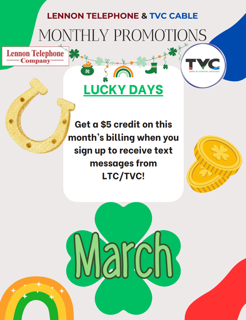 Welcome to TVC, Inc. and Lennon Telephone Company, your number one source for local telecommunication services! We have served the Lennon area with friendly and local telecommunications service for over 80 years! We are dedicated to giving you the very best service, with a focus on dependability, customer service and affordability!