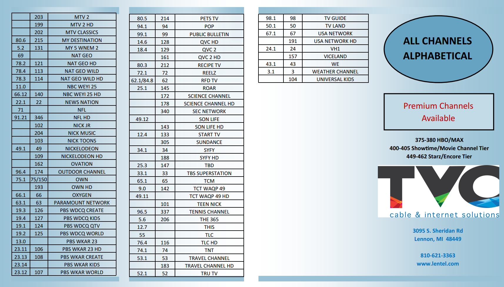 Thank you for choosing TVC! Your friendly & local Cable TV Provider!